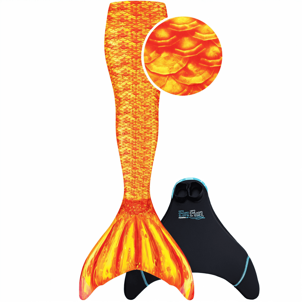 Du suchst eine sichere Meerjungfrauenflosse, die wie angegossen sitzt und lange hält? Dann entscheide dich für das Tropical Sunrise Set von Fin Fun. Perfekt für intensiven Einsatz beim Meerjungfrauenschwimmen, im Urlaub und beim Schwimmbadbesuch. Die Farbkombination mit glänzender Oberfläche sorgt dafür, dass du wie eine echte orange-gelbe Meerjungfrau strahlst! Fin Fun ist weltweit als Premium-Marke für Meerjungfrauenflossen bekannt. Diese Flosse aus der Mermaidens Kollektion besteht aus robustem, abriebfestem Stoff und ist mit verstärkten Flossenspitzen verarbeitet – das sorgt für eine lange Lebensdauer.